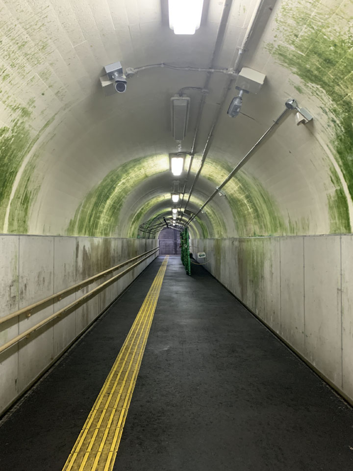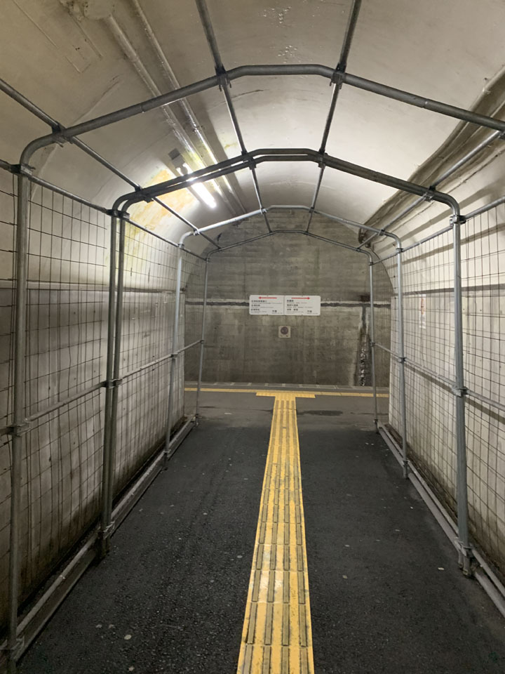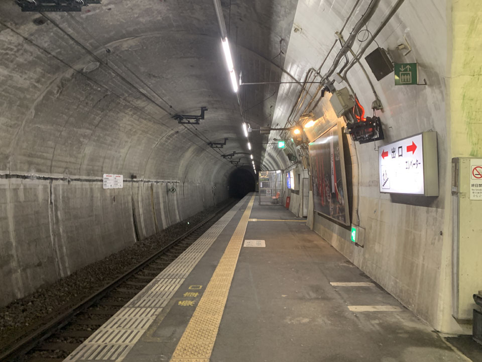 日本でも数少ないトンネル駅で、トンネルの中にホームがあり、改札まで階段や通路でつながっています。