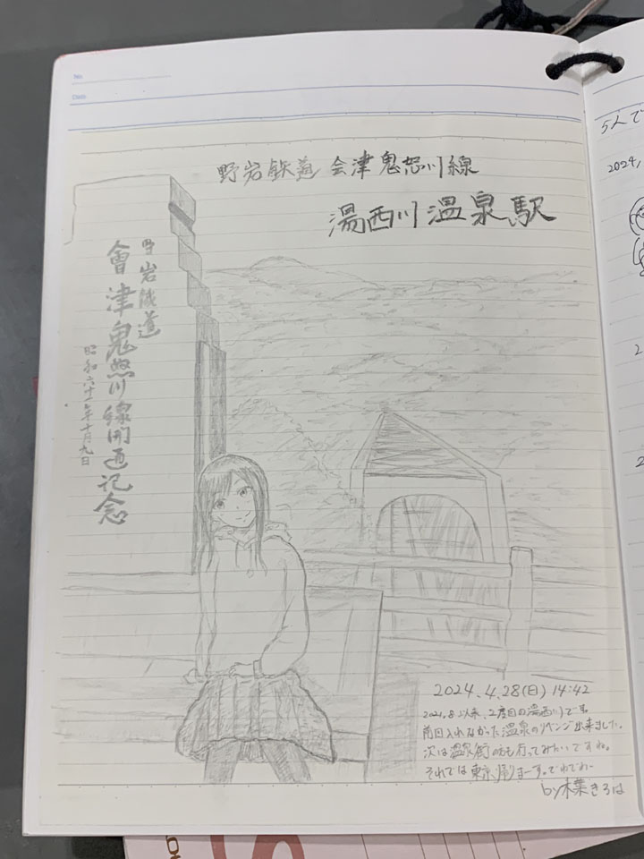 【2024年4作目】野岩鉄道 会津鬼怒川線 湯西川温泉駅 駅ノートイラスト