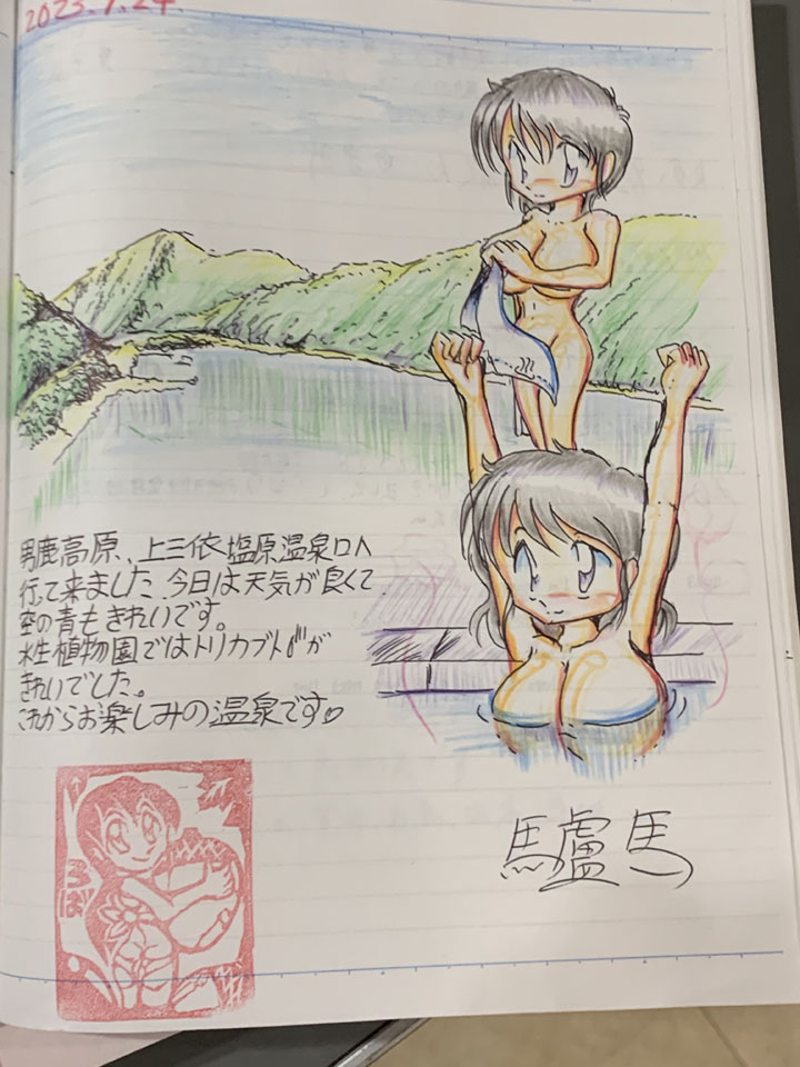 湯あがり鼻歌気分で駅ノートを描き始め、いつもより集中できる不思議な空間でした。